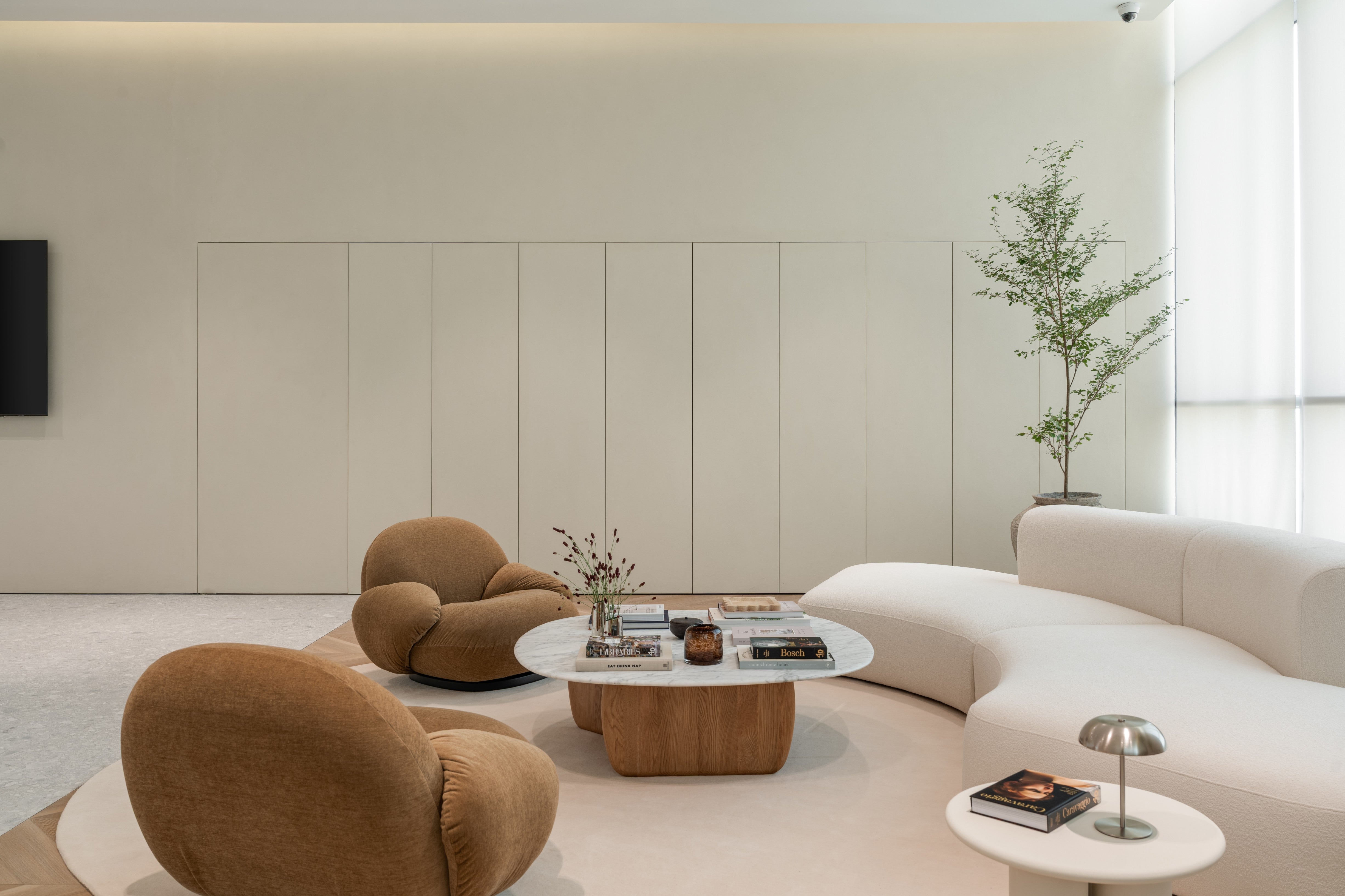 Nestled on the waterfront of La Plage Tower 1, the Al Thuriah Sales Office is a pinnacle of commercial interior design. Crafted by one of Dubai’s leading UAE interior designers—with six years of distinguished practice—this environment seamlessly blends minimalist interior design principles with client-centric ethos. Every detail, from the precision-crafted joinery to the curated wall art decor, has been selected to evoke refined comfort and communicate an unwavering commitment to timeless sophistication where ideas flourish, relationships deepen, and real-estate dreams come to life.