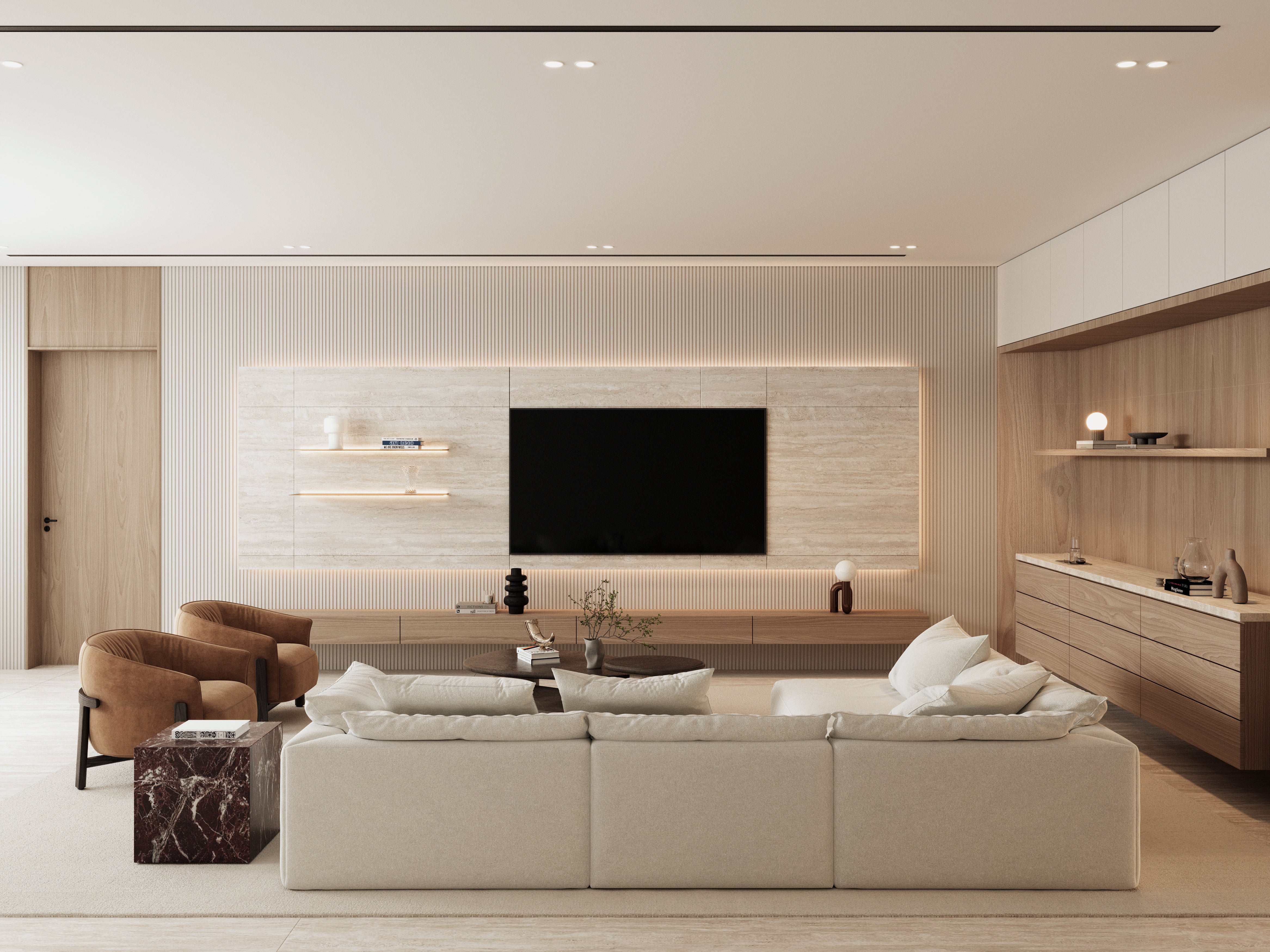 Throughout the villa, materials and proportions work in unison. The interplay of stone, wood, and light creates interiors that are timeless yet contemporary, luxurious yet livable. Every surface and finish contributes to a cohesive narrative, one that speaks of refinement, restraint, and enduring modernity.