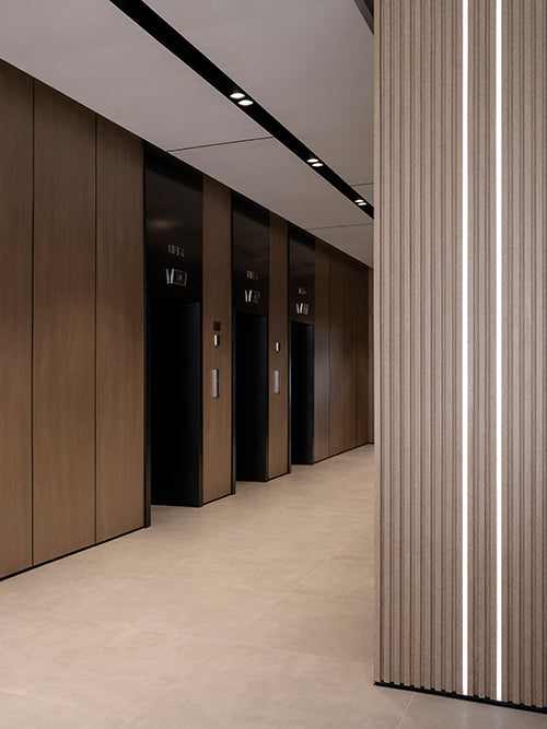 Light plays a pivotal role in shaping the atmosphere. Strategic lighting enhances the depth and texture of the walls, while the linear glow from the floor adds an element of futuristic elegance. It’s a play on shadows and illumination, creating an ambiance that’s both dynamic and tranquil.